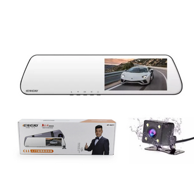 Главное достоинство видеорегистратора зеркала DVR C11 - это качественная фронтальная камера, которая записывает в формате Full HD. При этом угол обзора составляет 170°. Используется качественная матрица, делающая картинку яркой, сочной, четкой, а угол обзора экрана настолько широкий, что изображение не искажается с водительского сиденья.